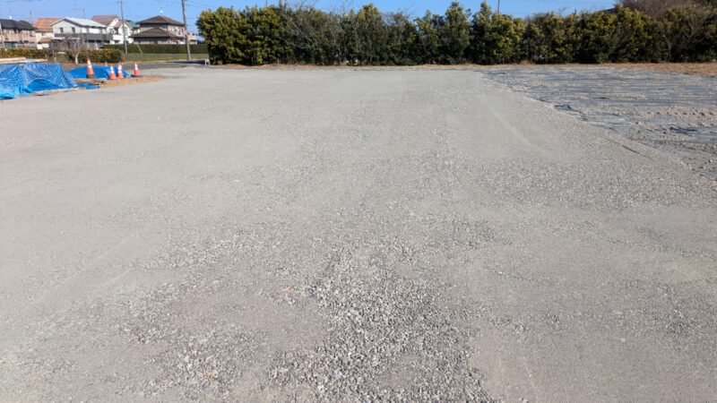 今回は資材置き場を除き、車両等の行き来する場所のみ砕石を敷きました。