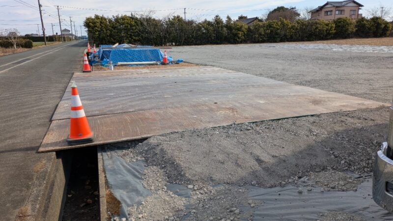整地最後に道路からの入口部に敷鉄板5×20を6枚 2か所設置致しました。